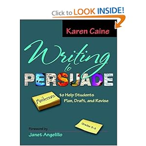 I'd like to share some great resources to help teach persuasive writing. My absolute favorite resource is Karen Caine's book, Writing to Persuade: Minilessons to Help Students Plan, Draft, and Revise, Grades 3-8. If you do nothing else as a result of this post, get your hands on a copy of this book. It is AWESOME. Our writing lead was able to order one for each teacher in the school. If you can't get a copy of your own, check it out from the library. Caine does a great job of mapping out realistic, engaging, and easy-to-implement minilessons to help you plan your unit from pre-writing to publishing.